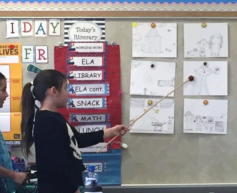 Inspired by the examples they saw and their excitement for the project, many students put in the extra effort to perform character voices and sound effects during their presentations. Afterwards, the performers and classmates reflected on the presentations. Classmates offered positive feedback and the student-performers suggested things they could improve, such as, “I have to work on my bunny voice.”